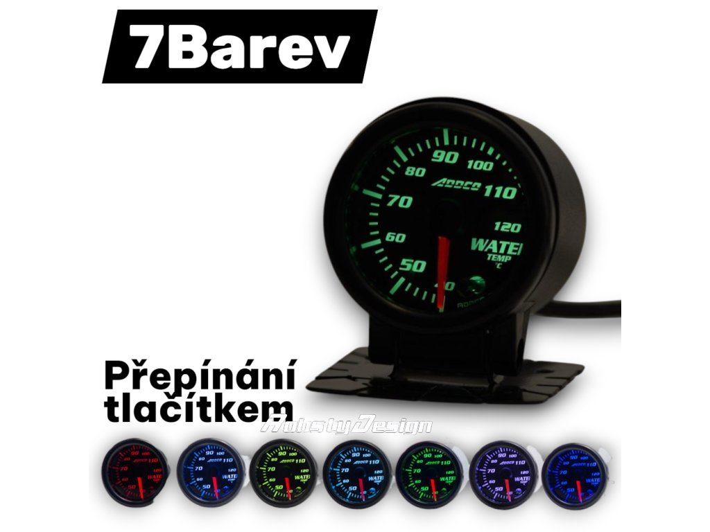 Ukazatel teplota vody v rozsahu 50-150°C. ADDCO přídavné budíky s nastavitelným led podsvícení (7barev).