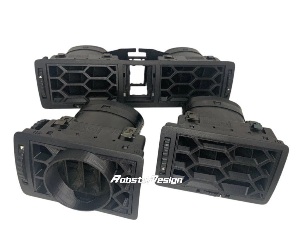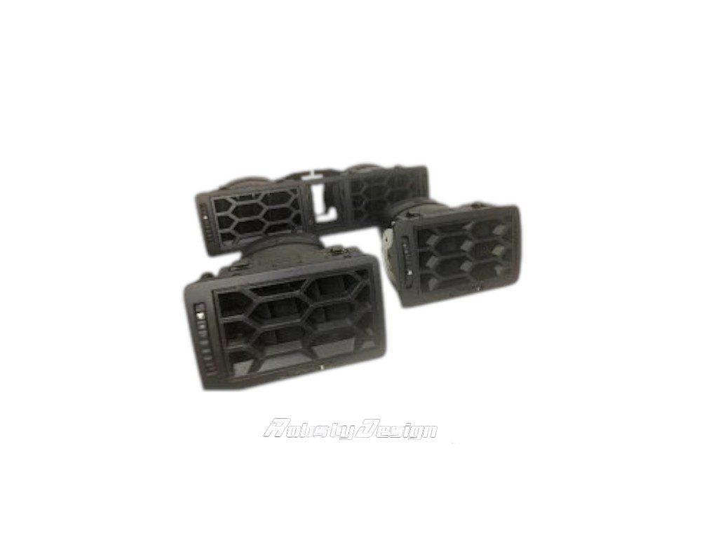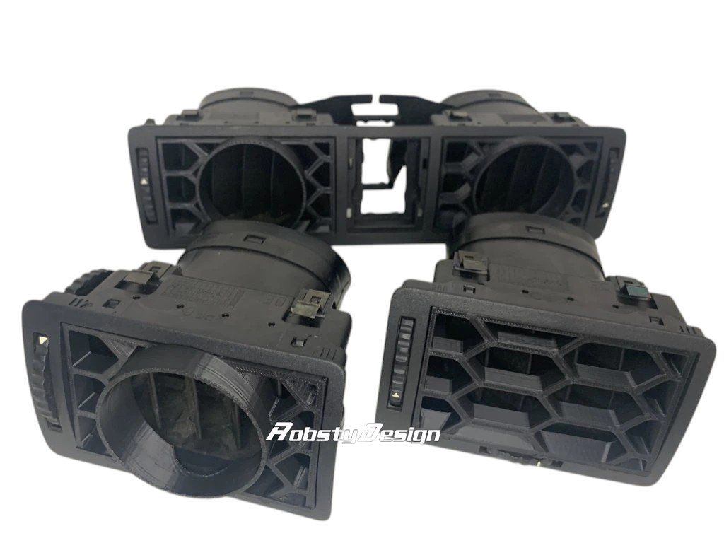 Instalace ? Stačí vycvaknout originální žebrování z výdechu a stačí instalovat naše držáky budíků nebo plné mřížky, kdy ideálně ještě vyžadují přichycení pomocí lepidla v rozích mřížky.
