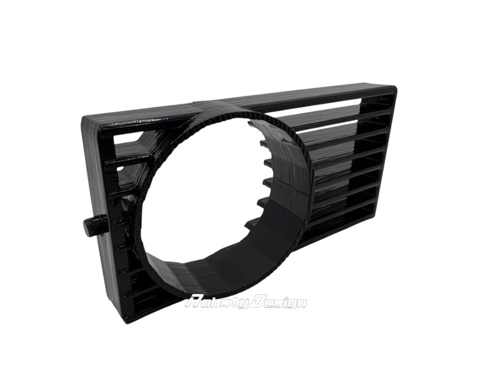 Varianta plné mřížky, nebo držák přídavného budíku na (Tlak turba, teplotu oleje, tlak oleje.... je určený do prostředních výdechu topení, případně na stranu řidiče (v levo), mřížka u spolujezdce pro vůz Volkswagen Golf mk4 v designu originální mřížky (Žebrování).