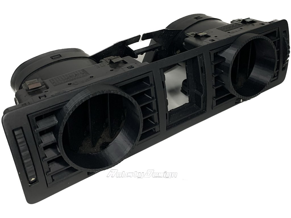 Instalace ? Stačí vycvaknout originální žebrování z výdechu a stačí instalovat naše držáky budíků nebo plné mřížky, kdy ideálně ještě vyžadují přichycení pomocí lepidla v rozích mřížky.