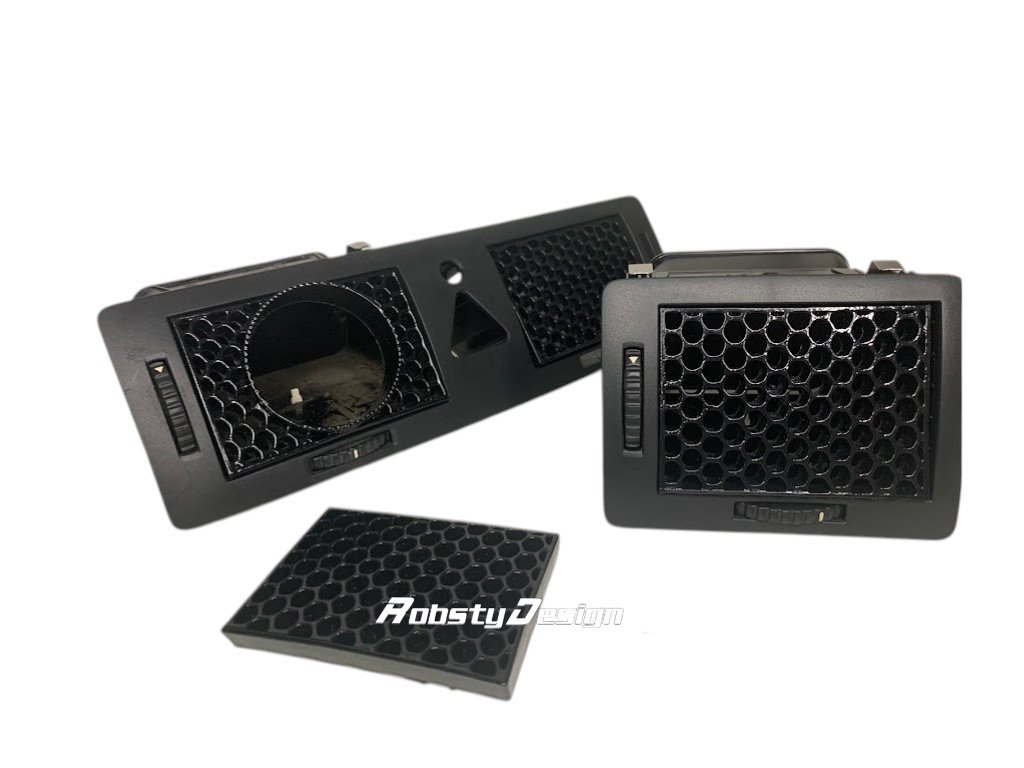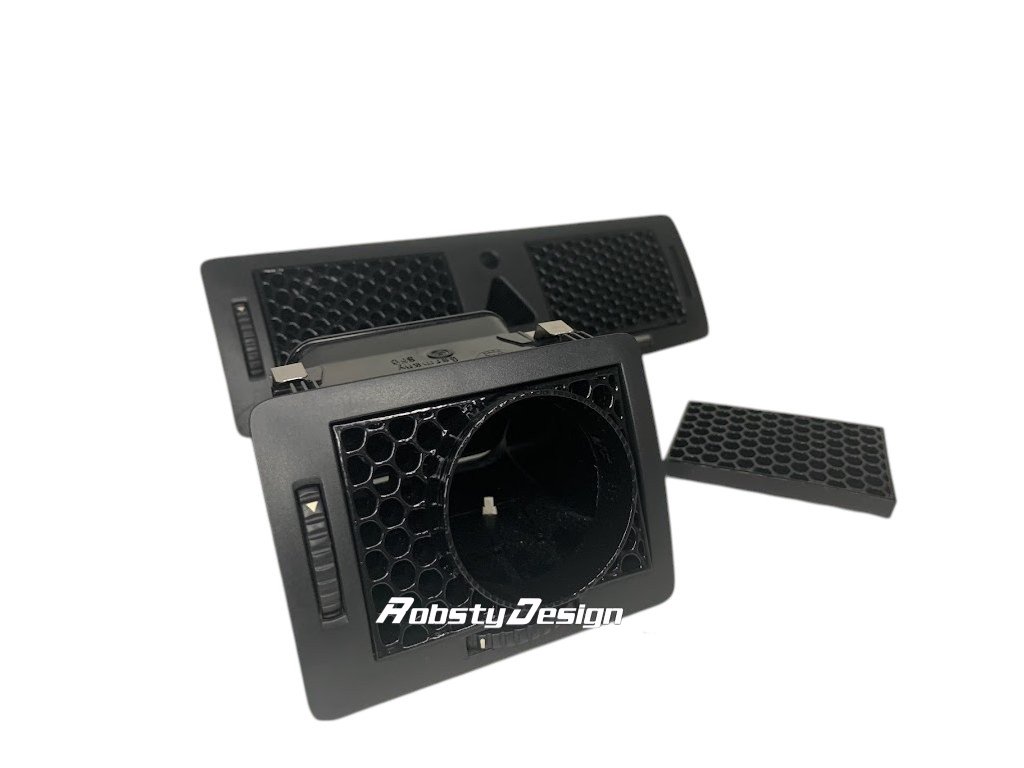 Samotný držák lze zakoupit do bočního i prostředního výdechu topení, kdy v následující nabídce produktů můžete zakoupit i mřížku bez držáku na přídavný budík, pro případnou kompatibilitu designu vzorů výplně či barvy všech výdechů v autě.