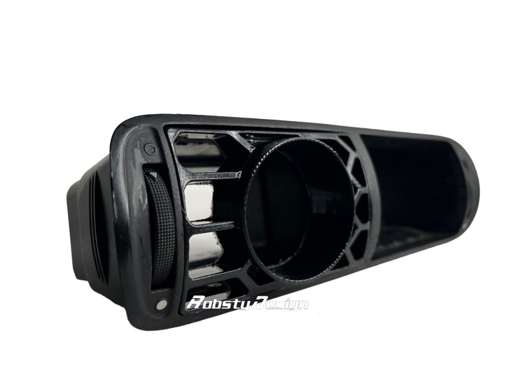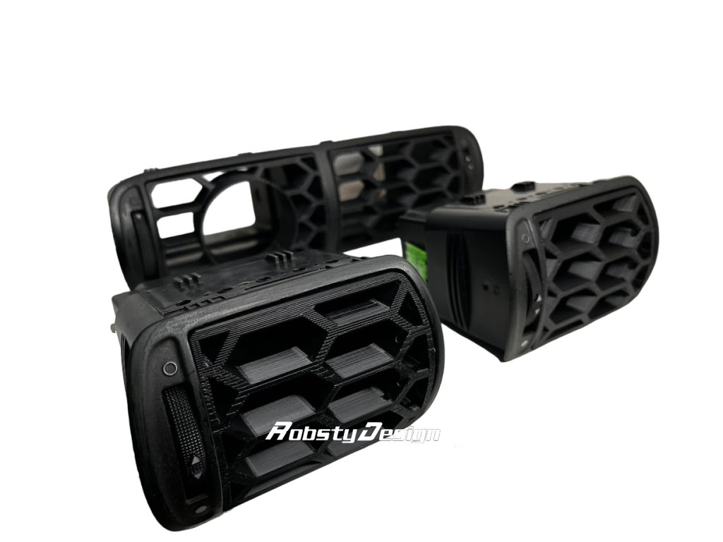 Samotný držák lze zakoupit do prostředního výdechu topení, kdy v následující nabídce produktů můžete zakoupit i mřížku bez držáku na přídavný budík, pro případnou kompatibilitu designu vzorů výplně či barvy všech výdechů v autě.