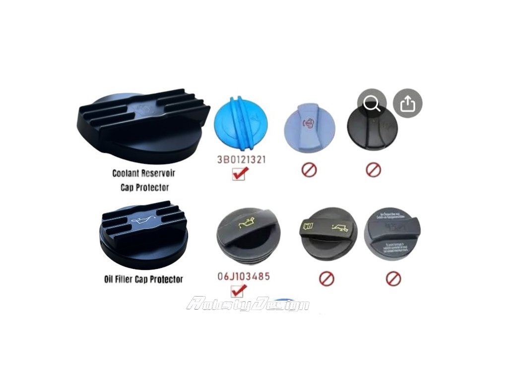 Hliníkové kryty na víčko oleje, vody a ostřikovače VAG 2.0 TSI/TFSI EA113/EA888.