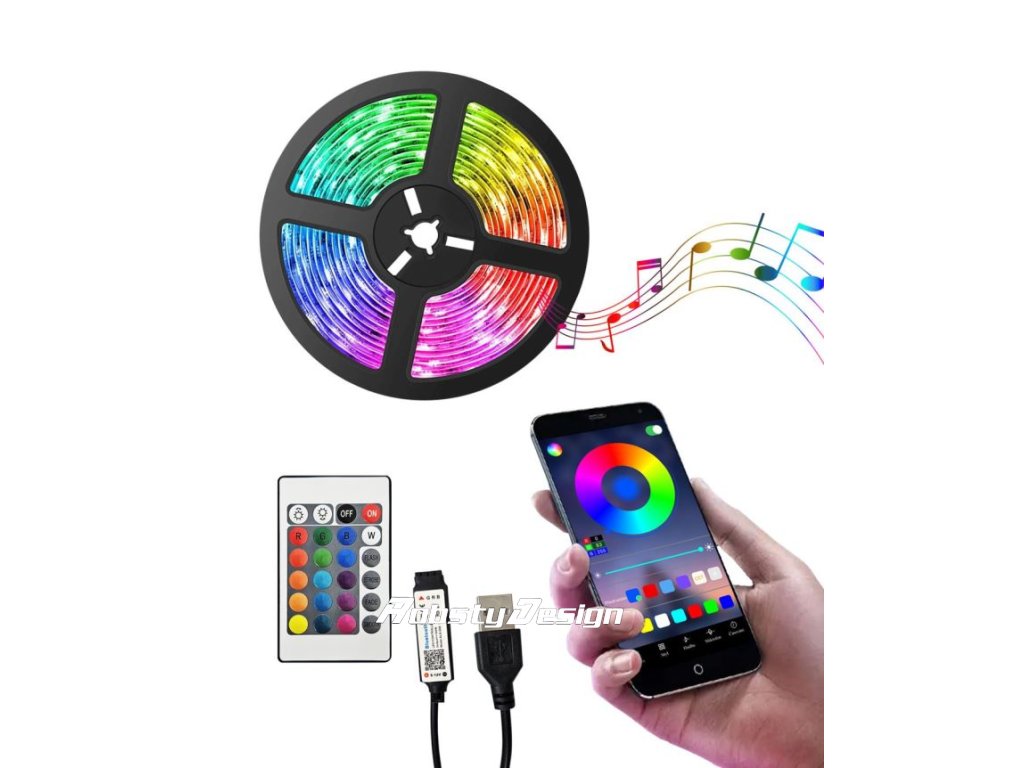 - Hudba – režim díky němuž led pásek mění barvy v rytmu hudby.