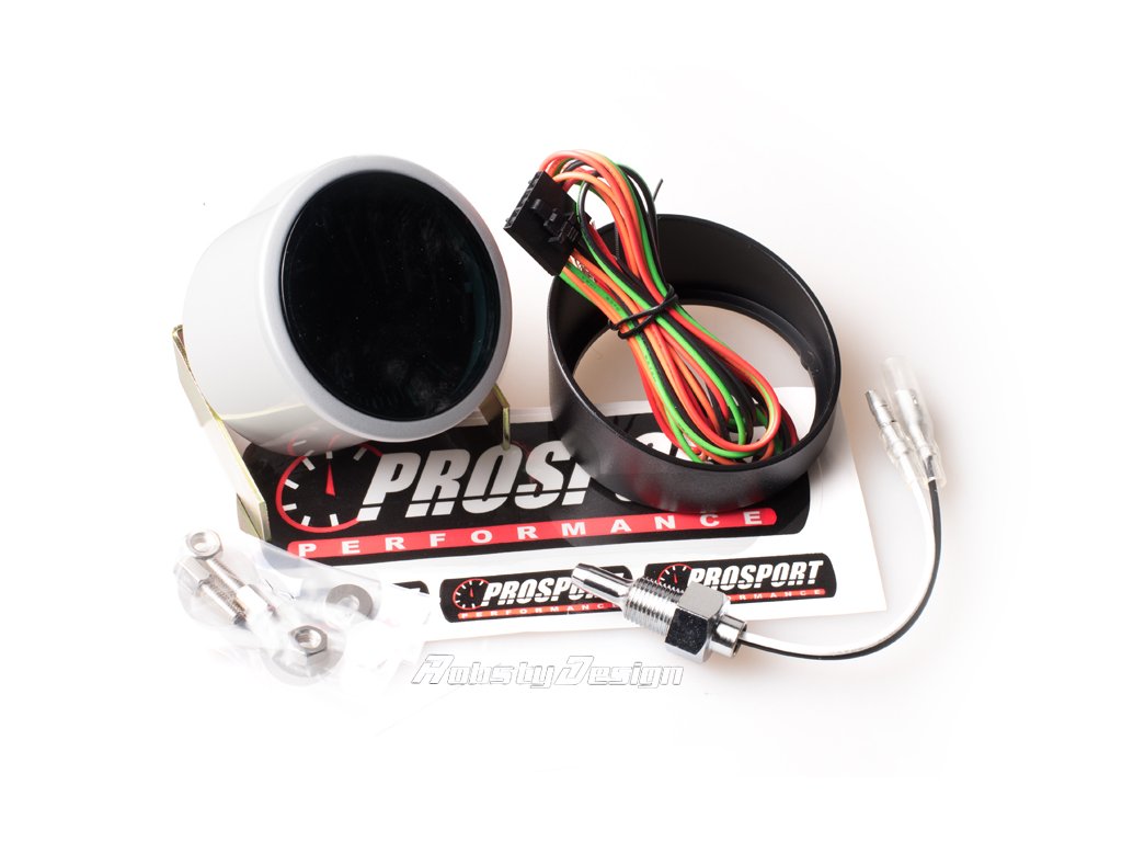 Přídavný ukazatel teploty oleje Prosport Performance ze série Smoke Lens. Ukazatel je vybaven krokovým motorkem, který zaručuje maximální přesnost.