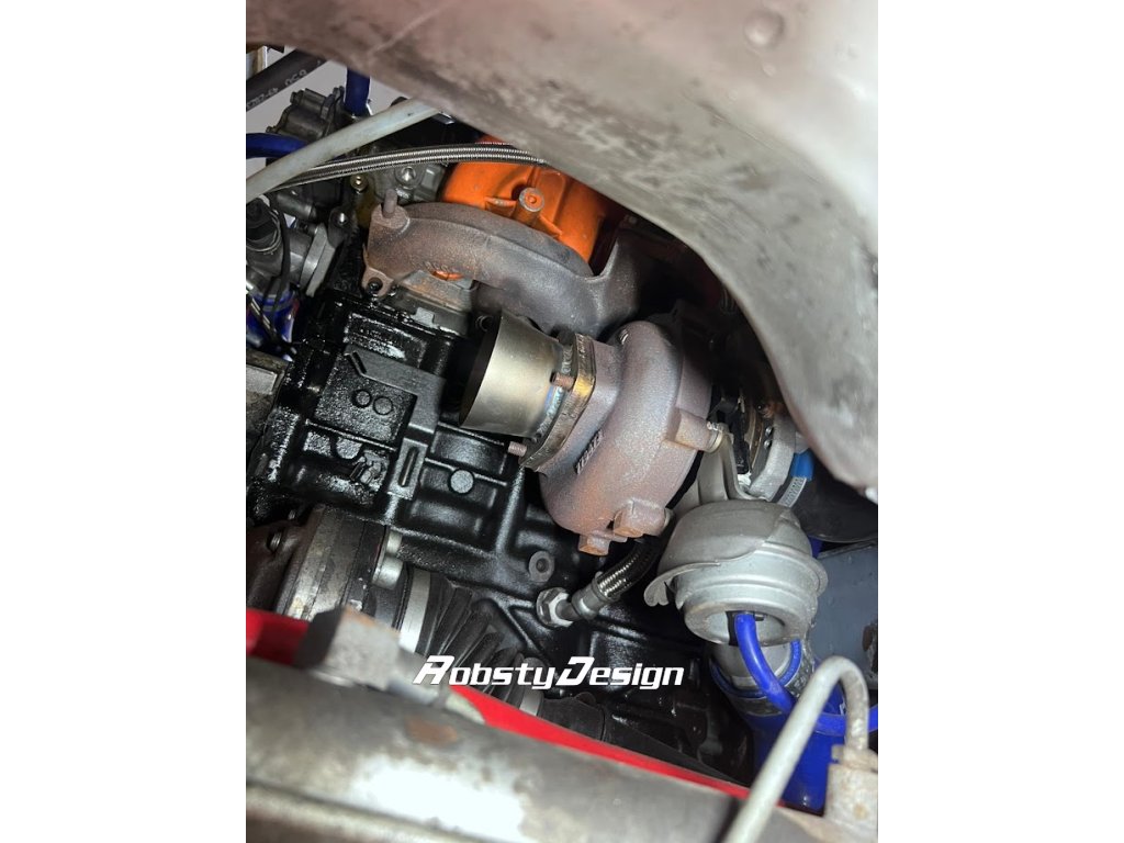 Příruba spojující downpipe s turbem.