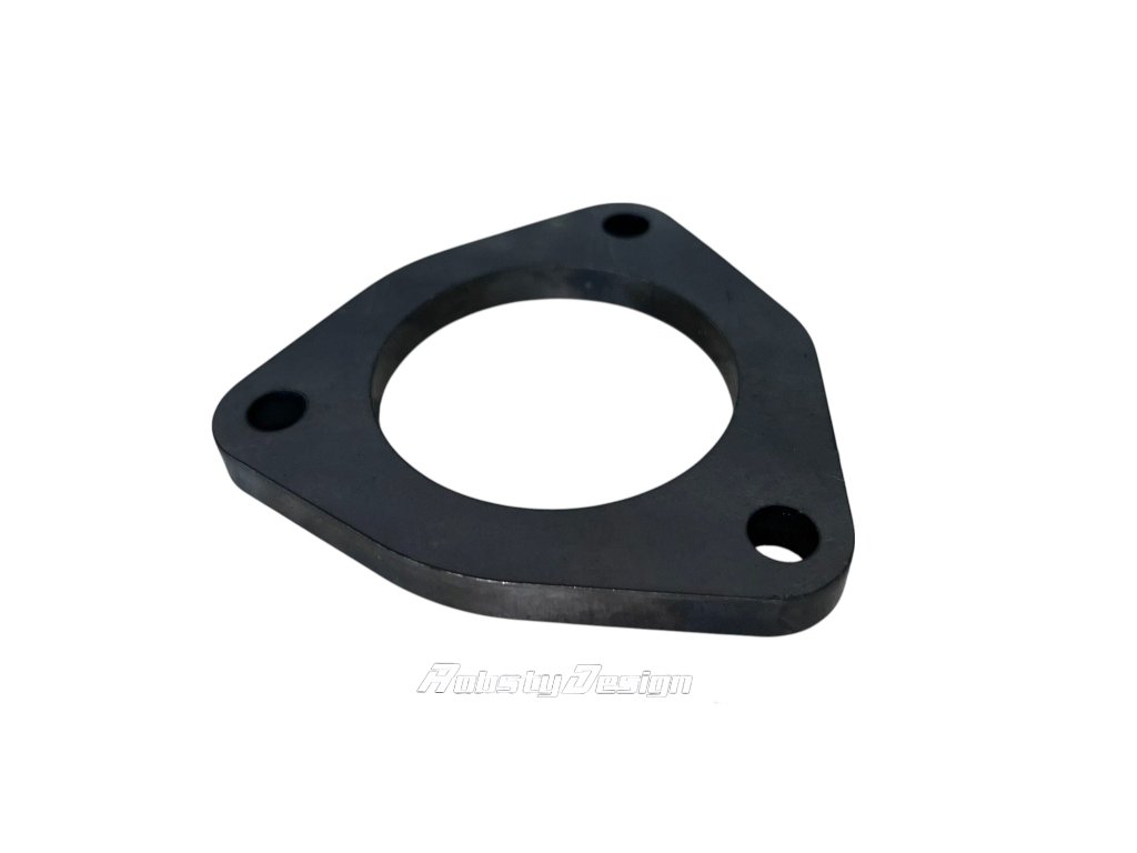 Ocel 10 mm tloušťka příruby a rozeč tří děr 75mm kdy průměr děr 8mm.